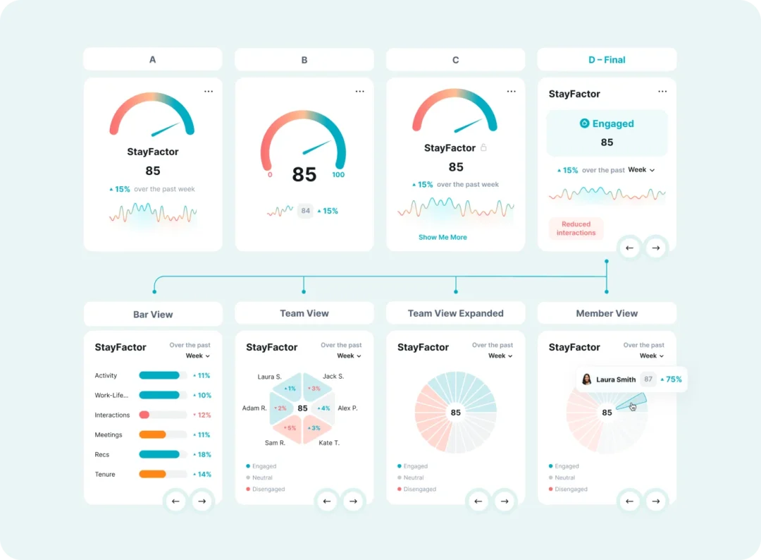 - Redesigned key metrics (e.g. StayFactor) from static widgets into modular, multi-level views. Key Improvements: