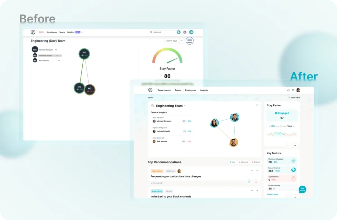 The Peoplelogic redesign went far beyond visual improvements. We rethought how users interact with AI-driven insights, transformed complex analytics into understandable narratives, and created a scalable design foundation for future growth.